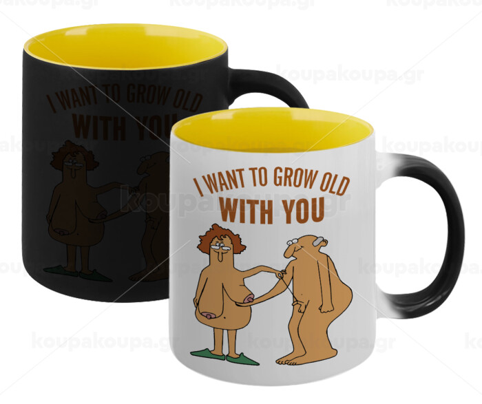 I want to grow old with you, Κούπα Μαγική εσωτερικό κίτρινη, κεραμική 330ml που αλλάζει χρώμα με το ζεστό ρόφημα