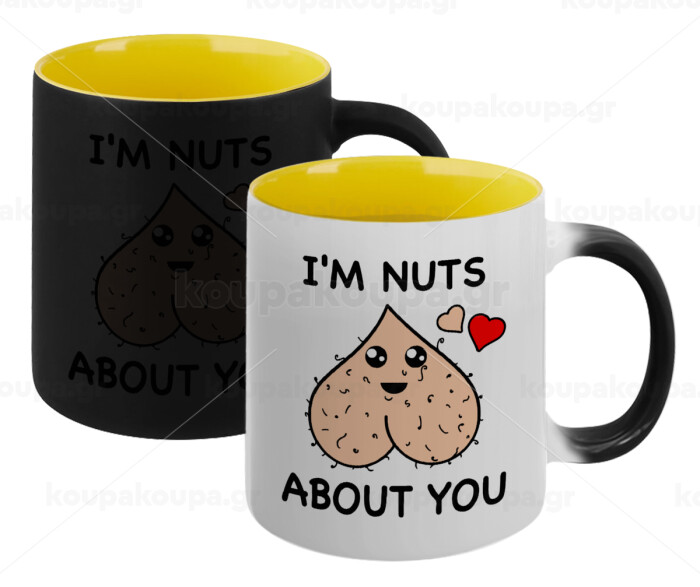 I'm Nuts About You, Κούπα Μαγική εσωτερικό κίτρινη, κεραμική 330ml που αλλάζει χρώμα με το ζεστό ρόφημα