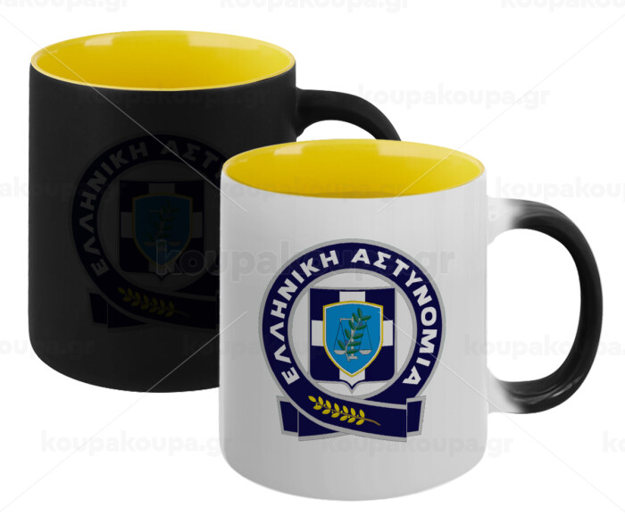 Ελληνική Αστυνομία, Κούπα Μαγική εσωτερικό κίτρινη, κεραμική 330ml που αλλάζει χρώμα με το ζεστό ρόφημα
