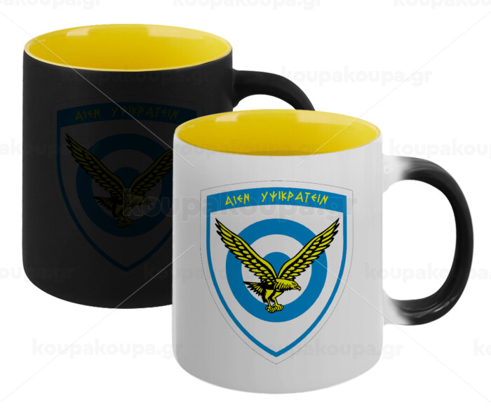 Ελληνική Πολεμική Αεροπορία, Κούπα Μαγική εσωτερικό κίτρινη, κεραμική 330ml που αλλάζει χρώμα με το ζεστό ρόφημα