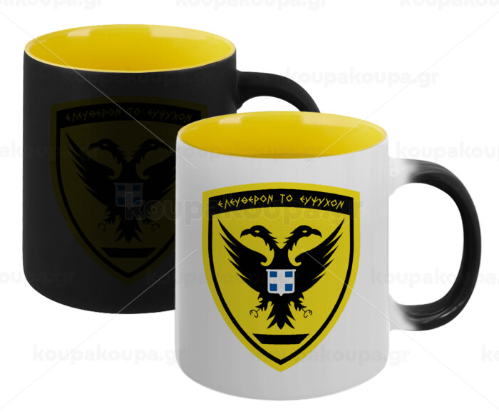 Ελληνικός Στρατός, Κούπα Μαγική εσωτερικό κίτρινη, κεραμική 330ml που αλλάζει χρώμα με το ζεστό ρόφημα