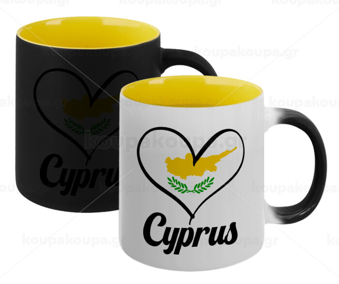 Cyprus flag, Κούπα Μαγική εσωτερικό κίτρινη, κεραμική 330ml που αλλάζει χρώμα με το ζεστό ρόφημα