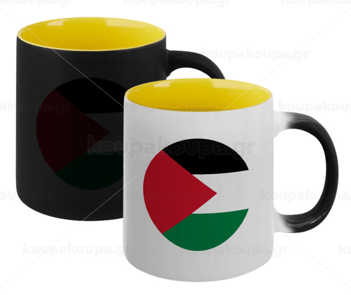 Palestine Flag, Κούπα Μαγική εσωτερικό κίτρινη, κεραμική 330ml που αλλάζει χρώμα με το ζεστό ρόφημα