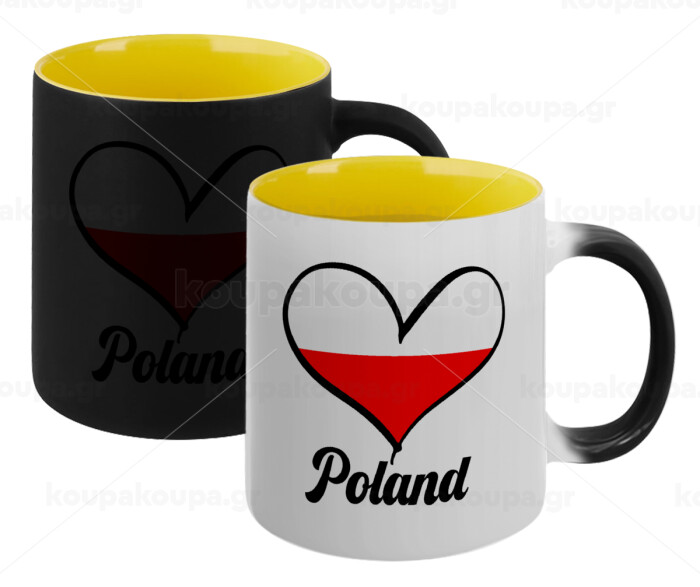 Poland flag, Κούπα Μαγική εσωτερικό κίτρινη, κεραμική 330ml που αλλάζει χρώμα με το ζεστό ρόφημα