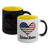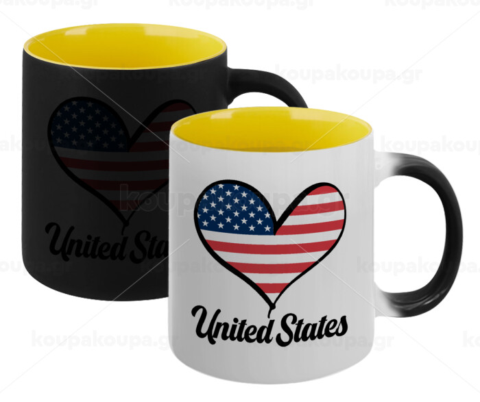 USA flag, Κούπα Μαγική εσωτερικό κίτρινη, κεραμική 330ml που αλλάζει χρώμα με το ζεστό ρόφημα