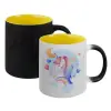 Cute unicorn, Κούπα Μαγική εσωτερικό κίτρινη, κεραμική 330ml που αλλάζει χρώμα με το ζεστό ρόφημα