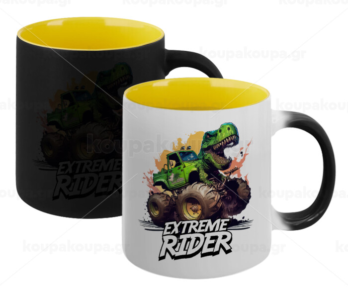 Extreme rider Dyno, Κούπα Μαγική εσωτερικό κίτρινη, κεραμική 330ml που αλλάζει χρώμα με το ζεστό ρόφημα