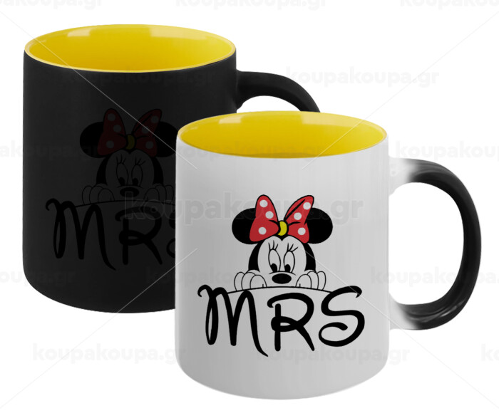 Minnie Mrs, Κούπα Μαγική εσωτερικό κίτρινη, κεραμική 330ml που αλλάζει χρώμα με το ζεστό ρόφημα