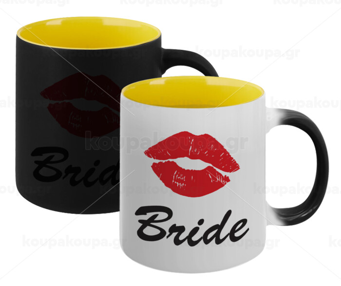 Bride kiss, Κούπα Μαγική εσωτερικό κίτρινη, κεραμική 330ml που αλλάζει χρώμα με το ζεστό ρόφημα