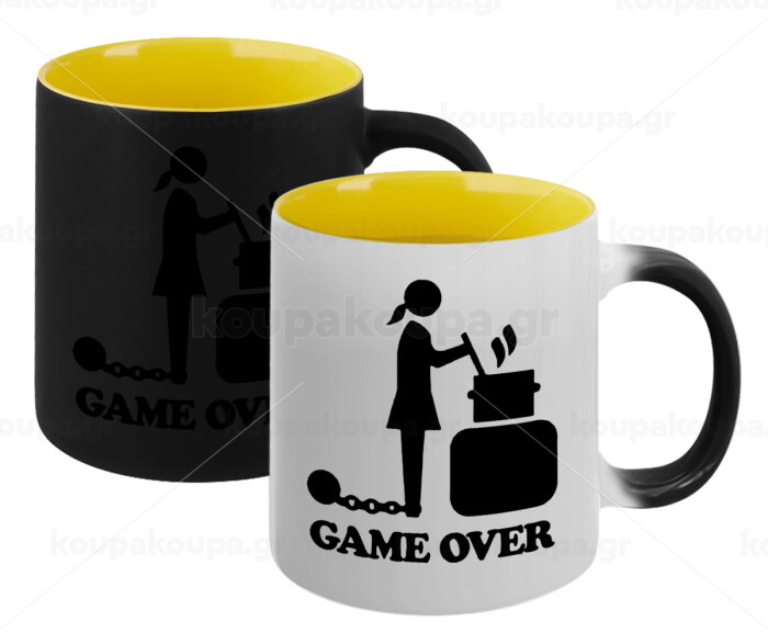 Woman Game Over, Κούπα Μαγική εσωτερικό κίτρινη, κεραμική 330ml που αλλάζει χρώμα με το ζεστό ρόφημα
