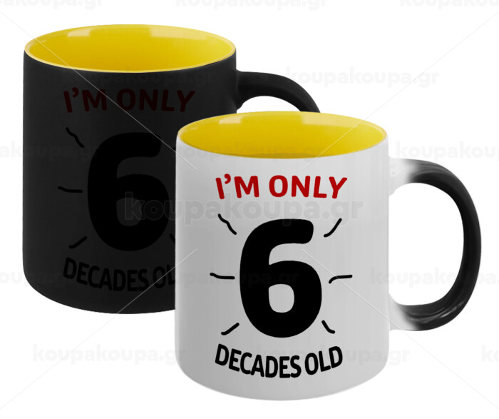 I'm only NUMBER decades OLD, Κούπα Μαγική εσωτερικό κίτρινη, κεραμική 330ml που αλλάζει χρώμα με το ζεστό ρόφημα
