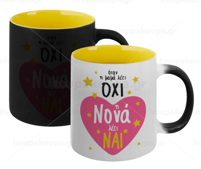 Η νονά λέει ναι!!!, Κούπα Μαγική εσωτερικό κίτρινη, κεραμική 330ml που αλλάζει χρώμα με το ζεστό ρόφημα