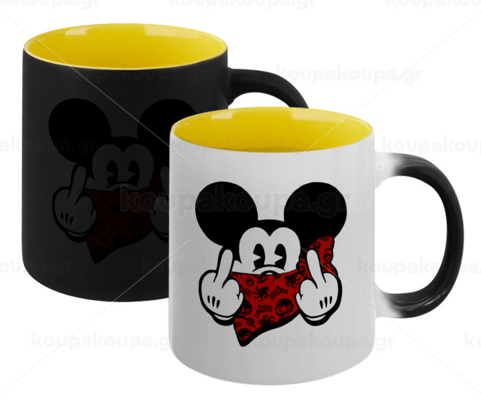 Mickey the fingers, Κούπα Μαγική εσωτερικό κίτρινη, κεραμική 330ml που αλλάζει χρώμα με το ζεστό ρόφημα