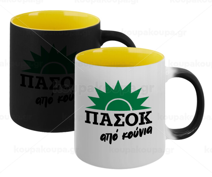 ΠΑΣΟΚ από κούνια, Κούπα Μαγική εσωτερικό κίτρινη, κεραμική 330ml που αλλάζει χρώμα με το ζεστό ρόφημα