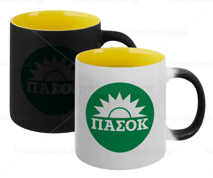 PASOK Green/White, Κούπα Μαγική εσωτερικό κίτρινη, κεραμική 330ml που αλλάζει χρώμα με το ζεστό ρόφημα