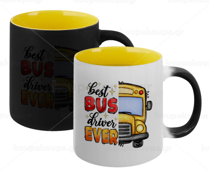 Best bus driver ever!, Κούπα Μαγική εσωτερικό κίτρινη, κεραμική 330ml που αλλάζει χρώμα με το ζεστό ρόφημα