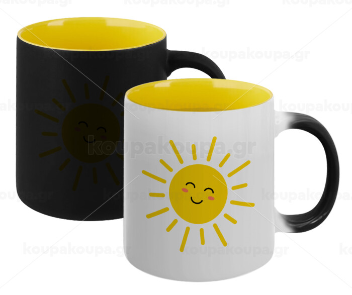 Happy sun, Κούπα Μαγική εσωτερικό κίτρινη, κεραμική 330ml που αλλάζει χρώμα με το ζεστό ρόφημα