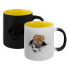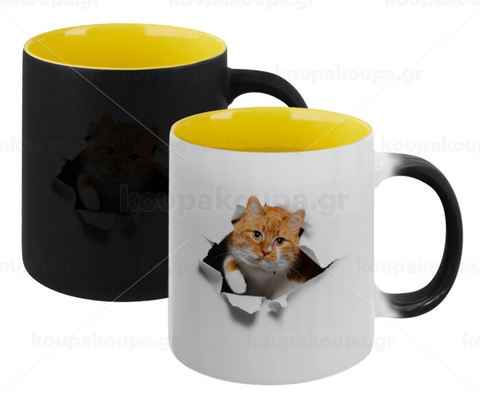 Cat cracked, Κούπα Μαγική εσωτερικό κίτρινη, κεραμική 330ml που αλλάζει χρώμα με το ζεστό ρόφημα