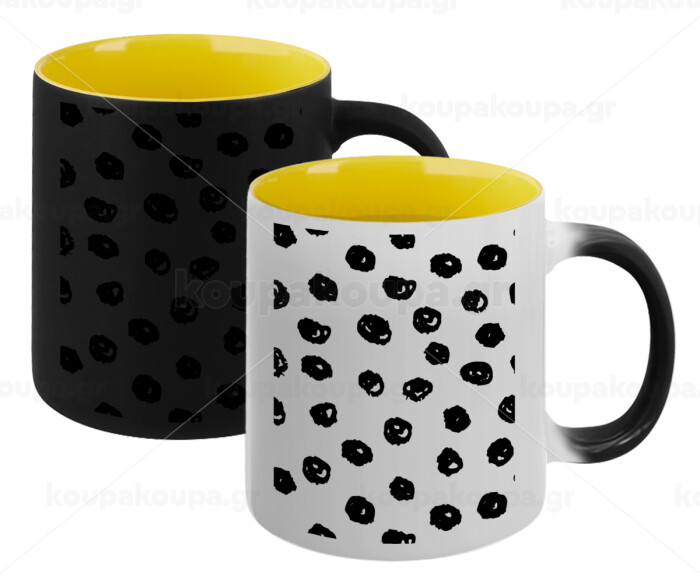 Doodle Dots, Κούπα Μαγική εσωτερικό κίτρινη, κεραμική 330ml που αλλάζει χρώμα με το ζεστό ρόφημα