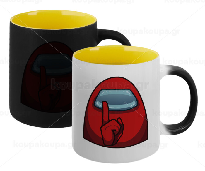 Among US, Κούπα Μαγική εσωτερικό κίτρινη, κεραμική 330ml που αλλάζει χρώμα με το ζεστό ρόφημα