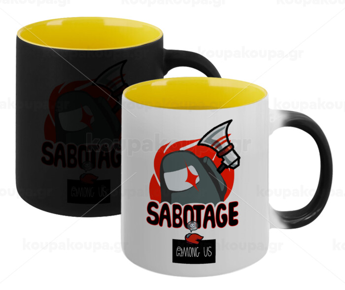 Among US Sabotage, Κούπα Μαγική εσωτερικό κίτρινη, κεραμική 330ml που αλλάζει χρώμα με το ζεστό ρόφημα