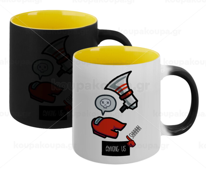 Among US Shhhh!!!, Κούπα Μαγική εσωτερικό κίτρινη, κεραμική 330ml που αλλάζει χρώμα με το ζεστό ρόφημα