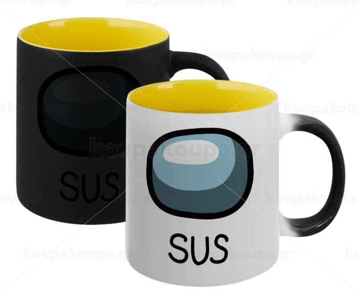 Among US SUS!!!, Κούπα Μαγική εσωτερικό κίτρινη, κεραμική 330ml που αλλάζει χρώμα με το ζεστό ρόφημα