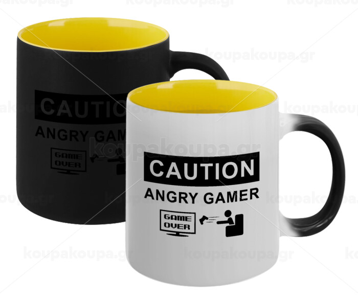 Caution, angry gamer!, Κούπα Μαγική εσωτερικό κίτρινη, κεραμική 330ml που αλλάζει χρώμα με το ζεστό ρόφημα