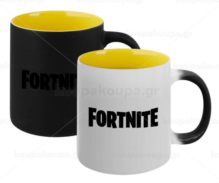 Fortnite landscape, Κούπα Μαγική εσωτερικό κίτρινη, κεραμική 330ml που αλλάζει χρώμα με το ζεστό ρόφημα