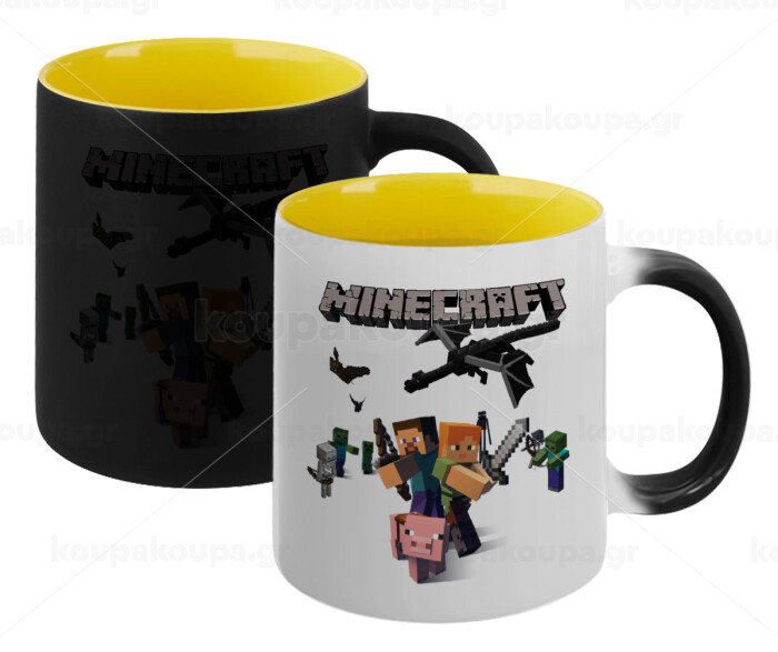 Minecraft Alex, Κούπα Μαγική εσωτερικό κίτρινη, κεραμική 330ml που αλλάζει χρώμα με το ζεστό ρόφημα
