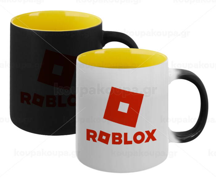 Roblox red, Κούπα Μαγική εσωτερικό κίτρινη, κεραμική 330ml που αλλάζει χρώμα με το ζεστό ρόφημα