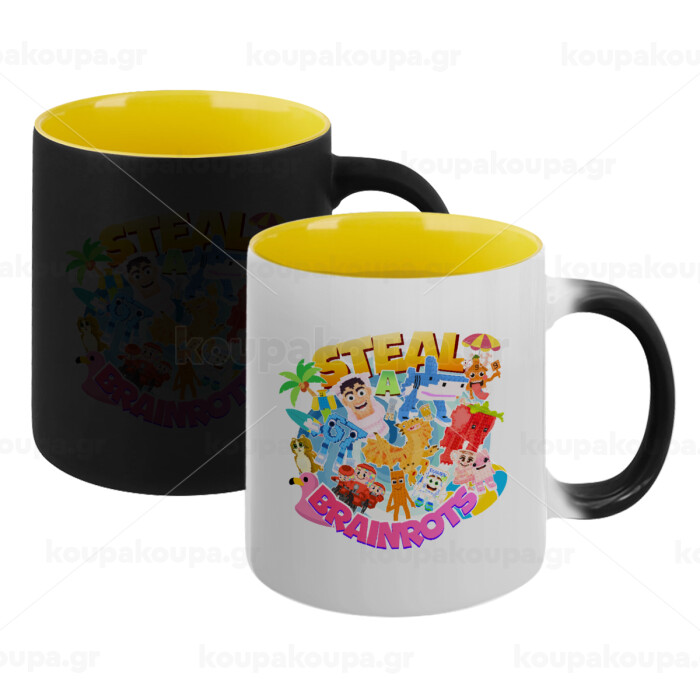 Roblox Steal a Brainrot, Κούπα Μαγική εσωτερικό κίτρινη, κεραμική 330ml που αλλάζει χρώμα με το ζεστό ρόφημα
