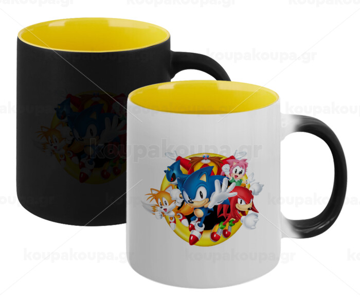 Sonic and friends, Κούπα Μαγική εσωτερικό κίτρινη, κεραμική 330ml που αλλάζει χρώμα με το ζεστό ρόφημα