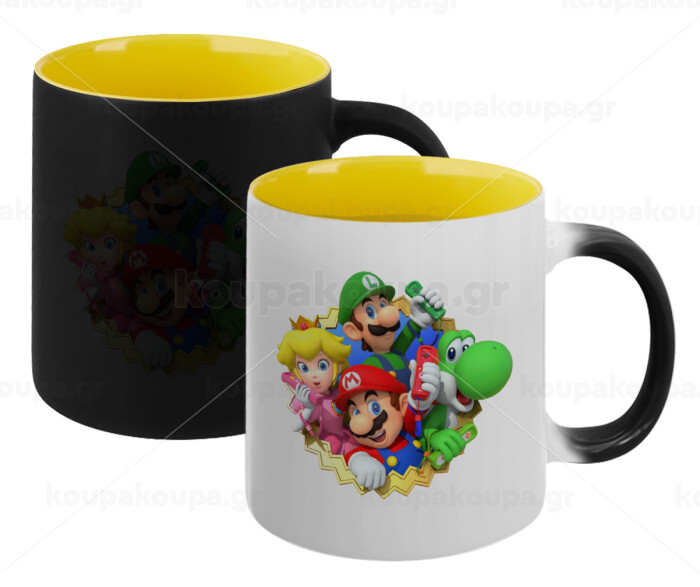 Super mario and Friends, Κούπα Μαγική εσωτερικό κίτρινη, κεραμική 330ml που αλλάζει χρώμα με το ζεστό ρόφημα