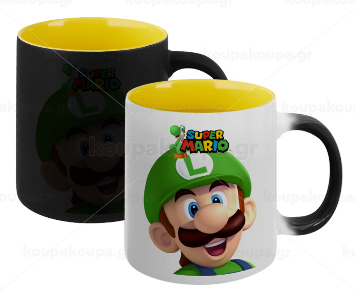Super mario Luigi, Κούπα Μαγική εσωτερικό κίτρινη, κεραμική 330ml που αλλάζει χρώμα με το ζεστό ρόφημα