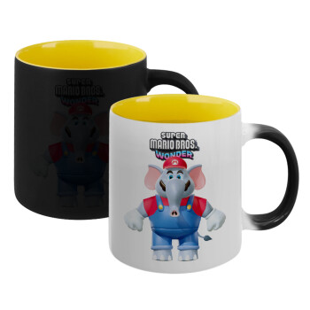 Super mario wonder, Κούπα Μαγική εσωτερικό κίτρινη, κεραμική 330ml που αλλάζει χρώμα με το ζεστό ρόφημα