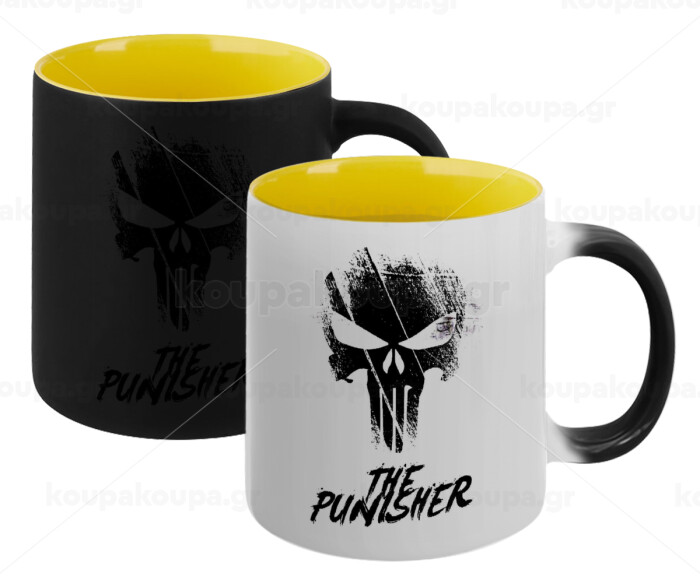 The punisher, Κούπα Μαγική εσωτερικό κίτρινη, κεραμική 330ml που αλλάζει χρώμα με το ζεστό ρόφημα