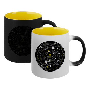 Προχίστορας, Κούπα Μαγική εσωτερικό κίτρινη, κεραμική 330ml που αλλάζει χρώμα με το ζεστό ρόφημα