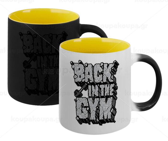 Back in the GYM, Κούπα Μαγική εσωτερικό κίτρινη, κεραμική 330ml που αλλάζει χρώμα με το ζεστό ρόφημα