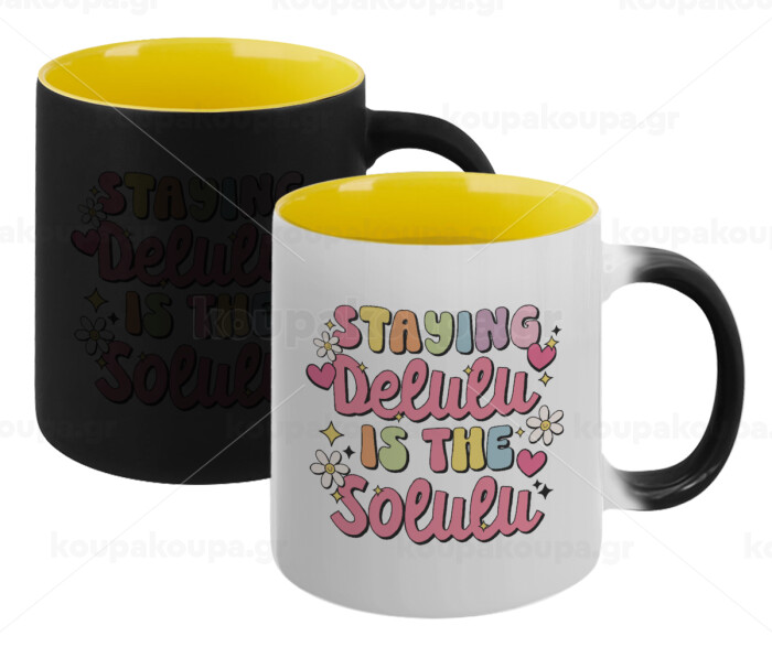 Delulu, Κούπα Μαγική εσωτερικό κίτρινη, κεραμική 330ml που αλλάζει χρώμα με το ζεστό ρόφημα