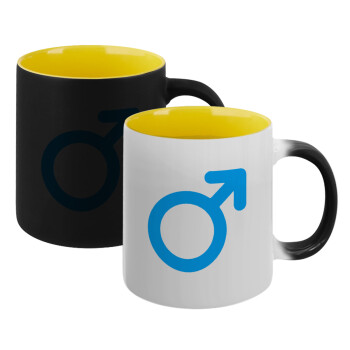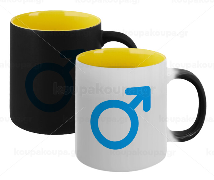MALE, Κούπα Μαγική εσωτερικό κίτρινη, κεραμική 330ml που αλλάζει χρώμα με το ζεστό ρόφημα