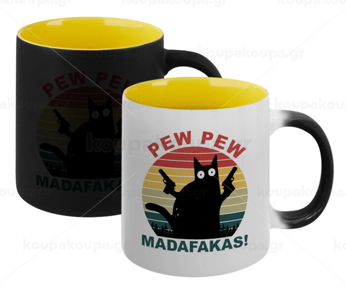 PEW PEW madafakas, Κούπα Μαγική εσωτερικό κίτρινη, κεραμική 330ml που αλλάζει χρώμα με το ζεστό ρόφημα