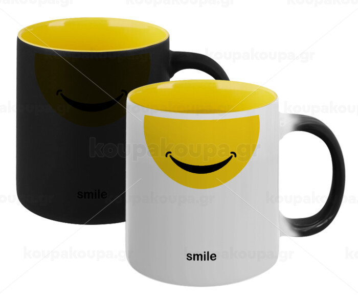 Smile Mug, Κούπα Μαγική εσωτερικό κίτρινη, κεραμική 330ml που αλλάζει χρώμα με το ζεστό ρόφημα