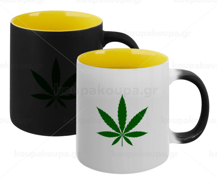 Weed, Κούπα Μαγική εσωτερικό κίτρινη, κεραμική 330ml που αλλάζει χρώμα με το ζεστό ρόφημα