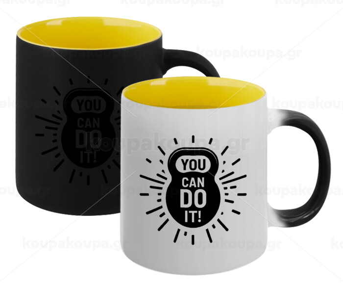 You can do it, Κούπα Μαγική εσωτερικό κίτρινη, κεραμική 330ml που αλλάζει χρώμα με το ζεστό ρόφημα