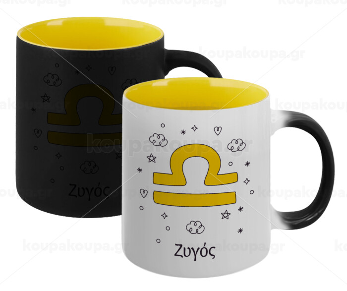 Ζώδια Ζυγός, Κούπα Μαγική εσωτερικό κίτρινη, κεραμική 330ml που αλλάζει χρώμα με το ζεστό ρόφημα