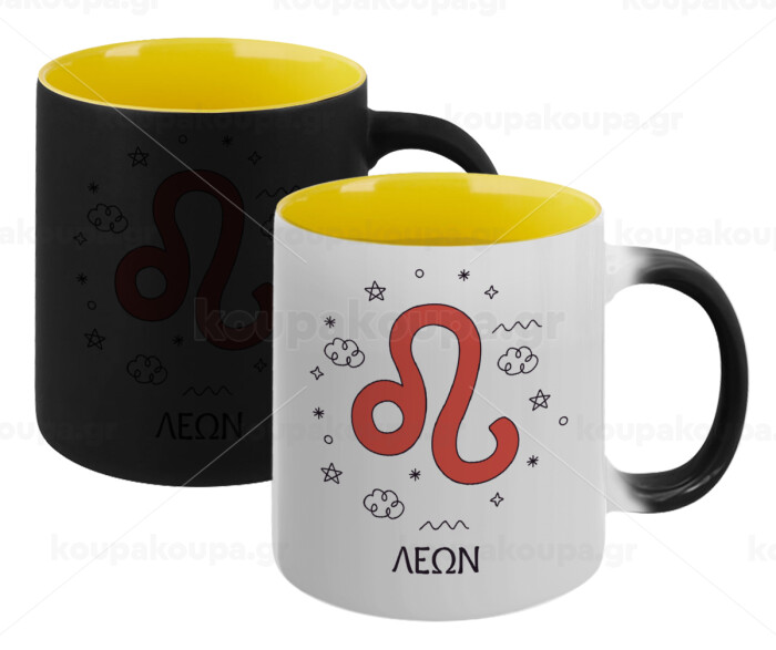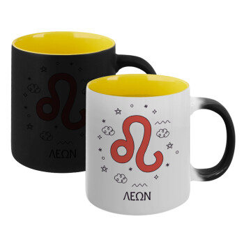 Ζώδια Λέων, Κούπα Μαγική εσωτερικό κίτρινη, κεραμική 330ml που αλλάζει χρώμα με το ζεστό ρόφημα