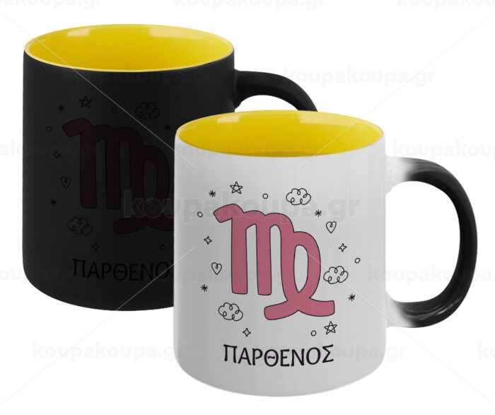 Ζώδια Παρθένος, Κούπα Μαγική εσωτερικό κίτρινη, κεραμική 330ml που αλλάζει χρώμα με το ζεστό ρόφημα