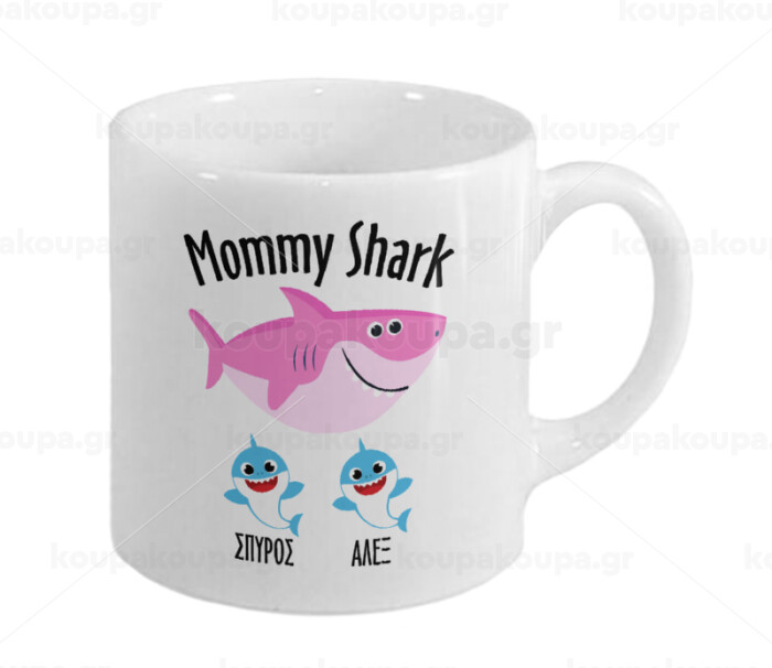 Mommy Shark (με ονόματα παιδικά), Κουπάκι κεραμικό, για espresso 150ml