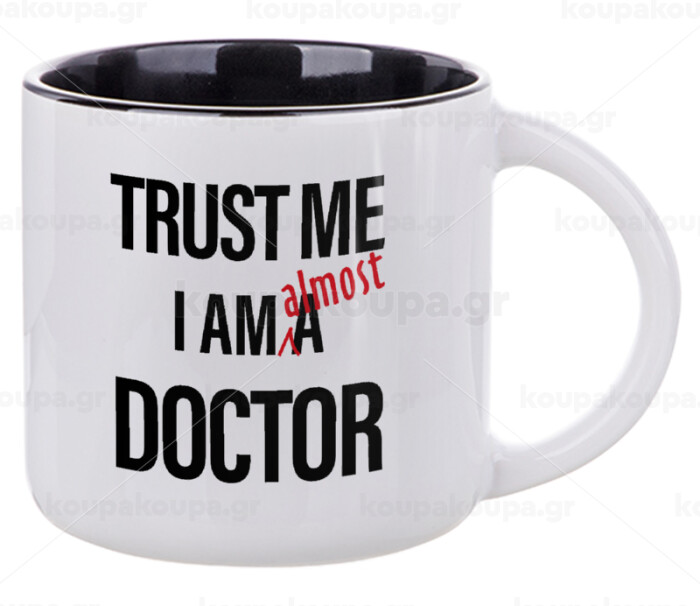 Trust me, i am (almost) Doctor, Κούπα κεραμική 400ml Λευκή/Μαύρη